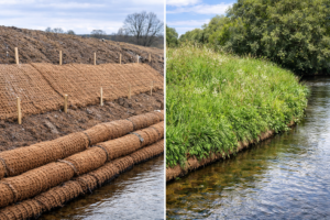 Natural fibre systems, when properly specified and installed, provide a practical route to delivering NbS without compromising engineering integrity. Coir — derived from coconut husk fibre — offers tensile strength, durability and moisture retention characteristics suited to temporary reinforcement during critical establishment phases.